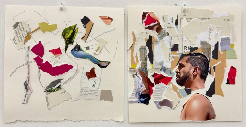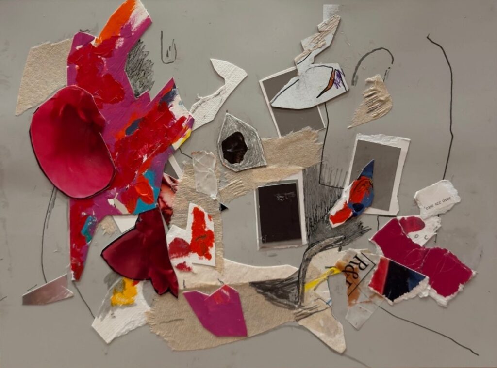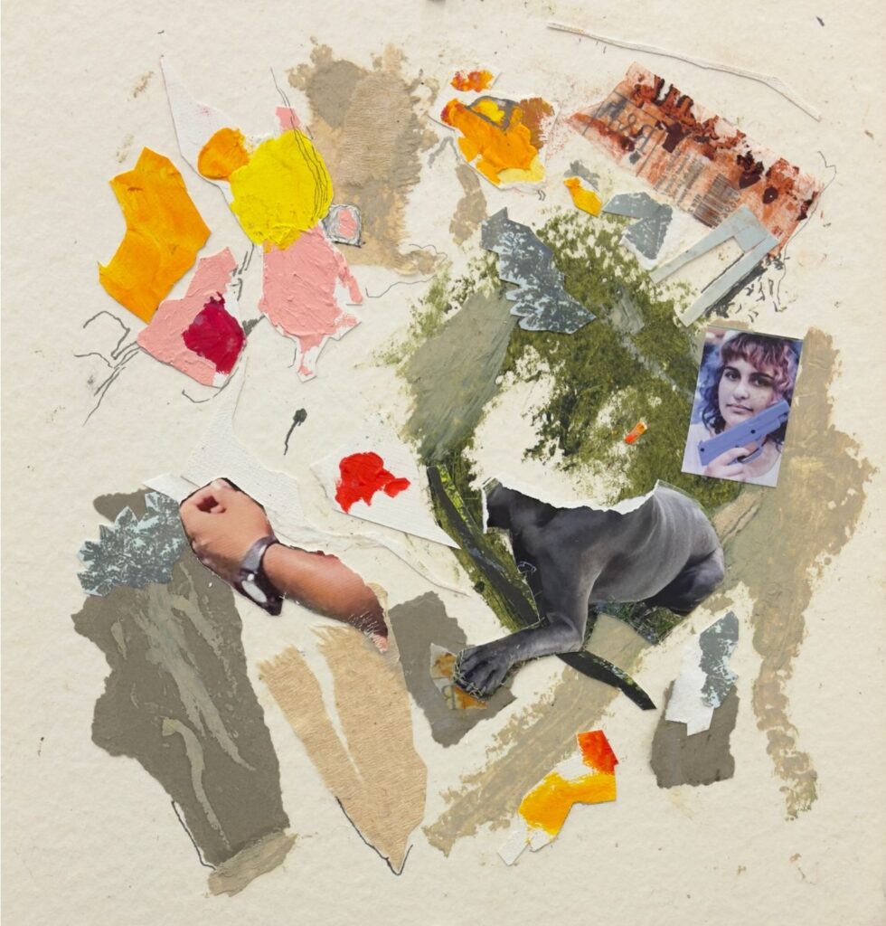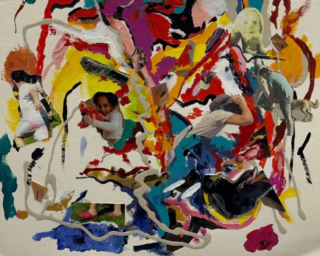 A bomb reduces everything nearby to fragments—buildings, lives, communities. These collages capture the instant of detonation, with vibrant surfaces concealing violent destruction. Bombings remain a devastating tool of terrorism, leaving grief in their wake. I pay tribute to the cities and homes senselessly destroyed. From these ruins, I salvage remnants—colors, objects, even body parts—to reflect both loss and survival. The work honors the resilience of the human spirit and its refusal to vanish.